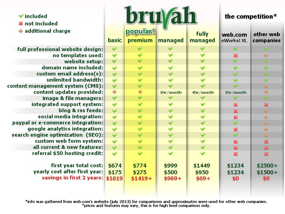 All Clients get to pick which Website Package they want. This is a one-time fee; for design, development & set-up of your website. Then clients will pick a hosting package that best suits their business needs. There are no other costs, outside of custom development projects. Your price breakdown Website Package Price + Hosting Price for the first year. Then the cost of your hosting package for every year after that. You will save hundreds and possibly thousands over other web company prices. Start saving today!
